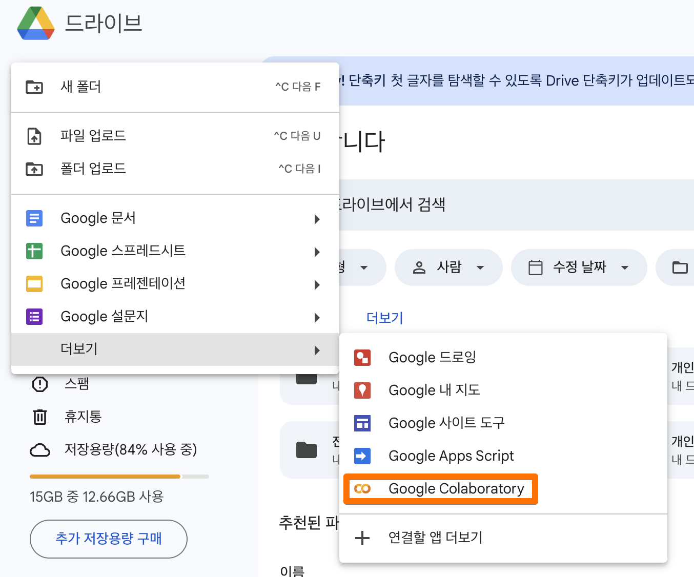 Colab ํ์ผ์ ์์ฑํ๋ ๋ฐฉ๋ฒ์ ๊ตฌ๊ธ ๋๋ผ์ด๋ธ์์ ์ ๊ท > ๋๋ณด๊ธฐ > Google Colaboratory ๋ฅผ ํด๋ฆญํ๋ฉด ๋ผ์.