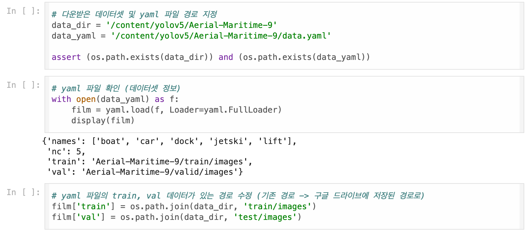 ์ด ๊ณผ์ ์ ๋ฐ์ดํฐ์ ์ yaml ํ์ผ์ ๋ด๊ธด ์ ๋ณด์ ๋ฐ๋ผ ์ฝ๋ ์์ ์ด ํ์ํ ์ ์์ด์!