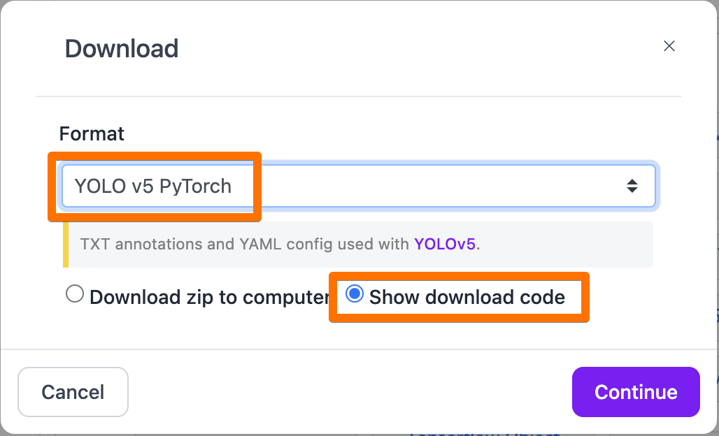- ํฌ๋งท์ ์ ํํ๊ณ 'Show download code'๋ฅผ ๋๋ฌ์ ๋์ค๋ ์ฝ๋๋ฅผ ์ ์ฅํด๋ฌ์ผ ํด์!