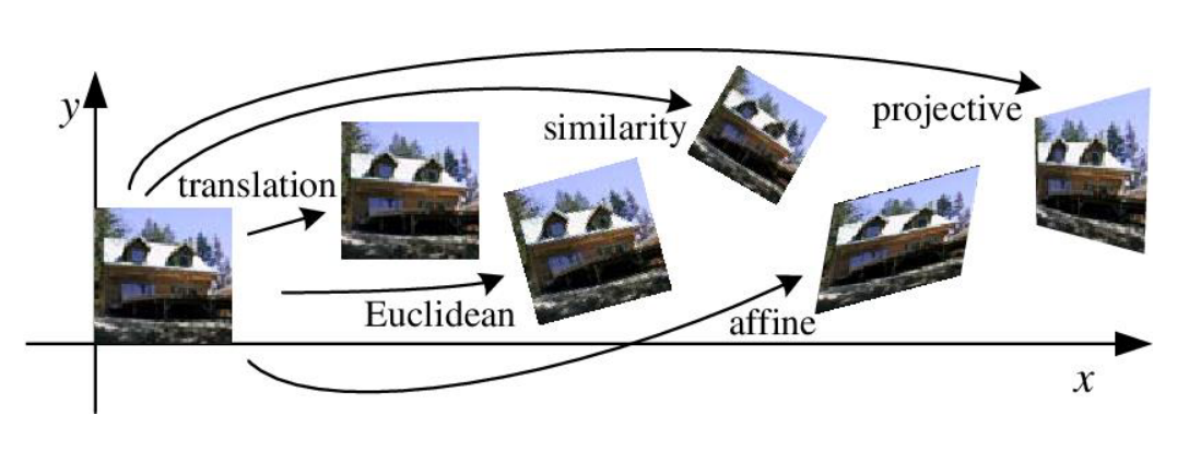 ์์์ ๊ธฐํํ์ ๋ณํ์ ํตํด ๋ค์ํ ํํ๋ก ๋ณํ๋ ์ ์๋๋ฐ ์์ ๋์ ๋ฐ๋ผ translation, eclidean,similarity, affine, perspective(projective) ๋ณํ์ผ๋ก ๋๋๋ค. ์ด ์ค์์ perspective transformation์ ์์ ๋๊ฐ ๊ฐ์ฅ ํฌ๋ค. ๋ค์ ๋งํด ๊ฐ์ฅ ๋ง์ ๋ณํ์ ์ค ์ ์๋ ๋ณํ์ด๋ผ๋ ๋ป์ด๋ค. ๋ค์ํ ์ปดํจํฐ ๋น์ ํ๋ก์ ํธ์์ ์นด๋ฉ๋ผ์ ๊ฐ๋์ ๋ฐ๋ผ ์๊ณก๋๋ ๊ฐ์ฒด๋ ํ ์คํธ ๋ค์ ์ ๋ฉด์ผ๋ก ๋ฐ๋ผ๋ณด๋ view๋ก ๋ณํํ๊ธฐ ์ํด affine ๋๋ perspective transformation์ด ์ฌ์ฉ๋๋ค.