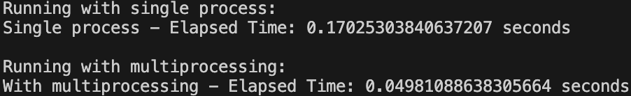 print(f"With multiprocessing - Elapsed Time: {elapsed_time} seconds")