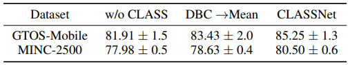 abalation study로는 class module과 DBC pooling의 효과를 따로 검증하기 위해 위와 같은 실험을 진행합니다.