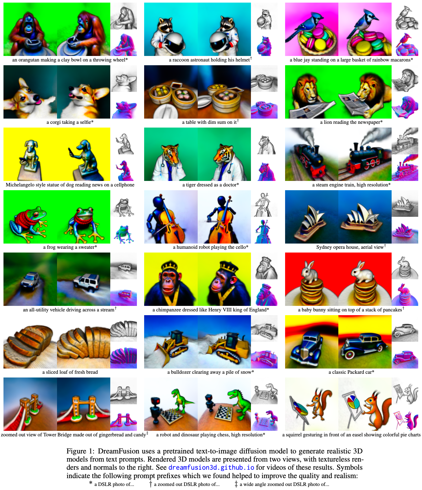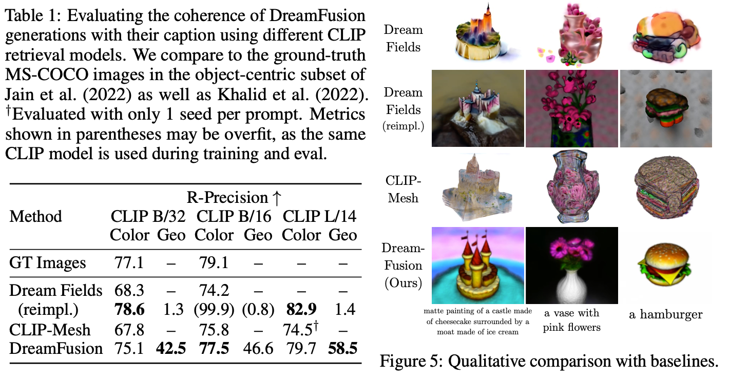์ฆ, DreamFusion์ ํ ์คํธ์ ๋ถํฉํ๋ ์ง์ง 3D ๊ตฌ์กฐ๋ฅผ ์์ฑํ ์ ์๋ ๋ฐฉ๋ฒ์ด๋ผ๋ ๊ฒ์ ์คํ์ ์ผ๋ก ์ฆ๋ช ํ๋ค.