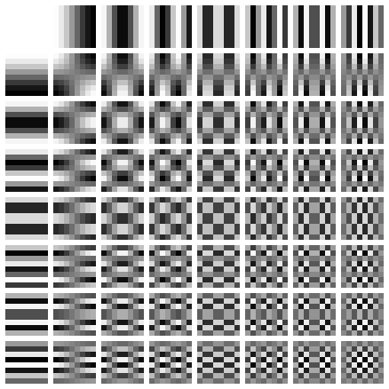 - ๊ฐ 8x8 block์ DCT ๋ฅผ ์ํํ๋ฉด frequency ํ๋ ฌ (0,0) ์์น์ ์ ์ฃผํ ์ฑ๋ถ(DC ๊ณ์)์ด ๋ฐฐ์น๋๊ณ , ์ฐ์ธก ํ๋จ์ผ๋ก ๊ฐ์๋ก ๊ณ ์ฃผํ ์ฑ๋ถ(AC ๊ณ์)์ด๋ค.