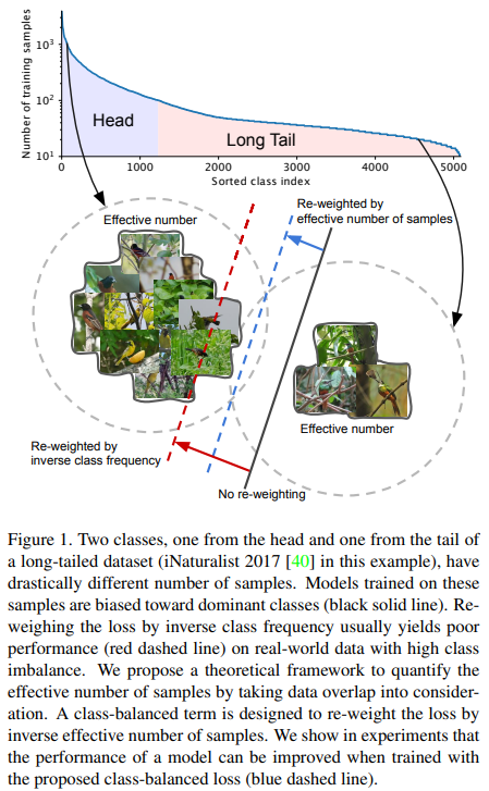 ์ผ๋ฐ์ ์ผ๋ก ๋ฐ์ดํฐ์ ๊ฐ์๊ฐ ๋ง์์ง๋ฉด, ์ ๋ณด์ ์๋ ๋ง์์ง๋๋ค. ํ์ง๋ง, ๋ฐ์ดํฐ๊ฐ ๊ณ~์ ์์ด๊ฒ๋๋ฉด ์ค๋ณต๋๋(overlap) ์ ๋ณด๊ฐ ๋ฐ์ํ๊ณ ์ด๋ ๋ฅ๋ฌ๋ ๋ชจ๋ธ์ด ํ์ต ์ ํฐ ์ด์ ์ ์ฃผ์ง ๋ชปํฉ๋๋ค. ๊ฐ๋จํ ์ค๋ช ํ๋ฉด ๊ฐ์์ง๋ผ๋ class๊ฐ ์ด๋ฏธ์ง๊ฐ 1000์ฅ ์ฏค ๋๋ ์ด๋ฏธ ๊ฑฐ์ ๋ชจ๋ ๊ฐ์์ง๋ฅผ ํฌํจํ๊ฒ ๋๋ค๋ฉด 1000์ฅ์ ๋์ด์ 3000์ฅ 5000์ฅ์ ์ฌ์ฉํ๋๋ผ๋ ์ ๋ณด๋์ด ํฌ๊ฒ ๋ ๋ง์์ง์ง๋ ์๋๋ค๋ ๊ฒ์ ๋๋ค. ์ด์ ์ฐ๊ตฌ์์๋ ์ด๋ฌํ ์ฌ์ค์ ๊ฐ๊ณผํ์ฑ class์ ๋ฐ์ดํฐ ๊ฐ์๋ง์ผ๋ก ํ์ต ์ ๋๋ฅผ ์กฐ์ ํ์ต๋๋ค. ๋ณธ ๋ ผ๋ฌธ์์๋ data์ overlap์ ์์น์ ์ผ๋ก ์ธก์ ํ๋ ๋ฐฉ๋ฒ์ ์ ์ํ๊ณ , ์ด๋ฅผ Effective number ๋ผ๊ณ ํฉ๋๋ค. ์ด์ ์ฐ๊ตฌ์์ class frequency ์ inverse๋ฅผ loss function์ ๊ณฑํ๋ค๋ฉด, ๋ณธ ๋ ผ๋ฌธ์์ ์ ์ํ๋ ๋ฐฉ๋ฒ์ effective number์ ์ญ์๋ฅผ loss function์ ๊ณฑํ์ฌ ์ฌ์ฉํฉ๋๋ค. ์ฆ, ์๋ฏธ์๋(effective) ๋ฐ์ดํฐ๊ฐ ๋ง์์๋ก ์ ๊ฒ ์ ๋ฐ์ดํธ ํ๋ ๋ฐฉ์์ด๋ผ๊ณ ์๊ฐํ๋ฉด ๋ฉ๋๋ค.