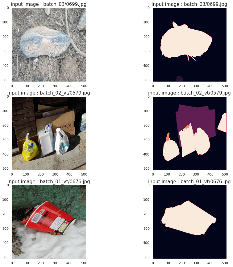 axes[idx][1].set_title("input image : {}".format(image_infos[idx]['file_name']), fontsize = 15)
